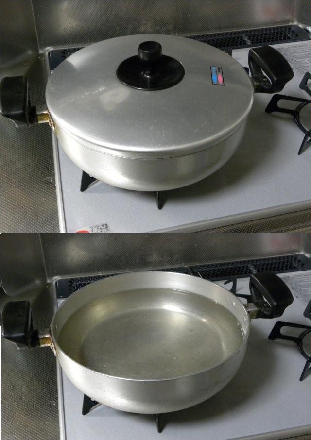 フライパンを煮炊きに使用すると意外と便利でガス消費量も少ない。